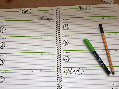 I made a daily planner/check list for my chickens to note down what happened each day.
