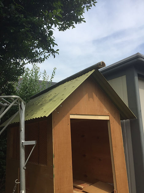 To show my thinking skills I cut a bamboo stick in half and used it for the ceiling to make the top waterproof since I already used my budget. (We